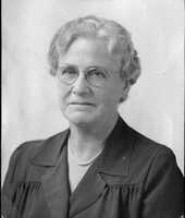 Portrait of Lily Hockin, 1946 Head and shoulders portrait of Lily Hockin wearing a dark colored blouse or dress with a pearl necklace. She wears glasses and has her hair permed.