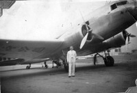 Don Willmott Awaiting Transport at Kunming Airbase Corporal Don Willmott waiting for the Douglas C-54 Skymaster to board for his flight to Calcutta with other US troops.