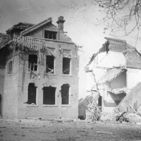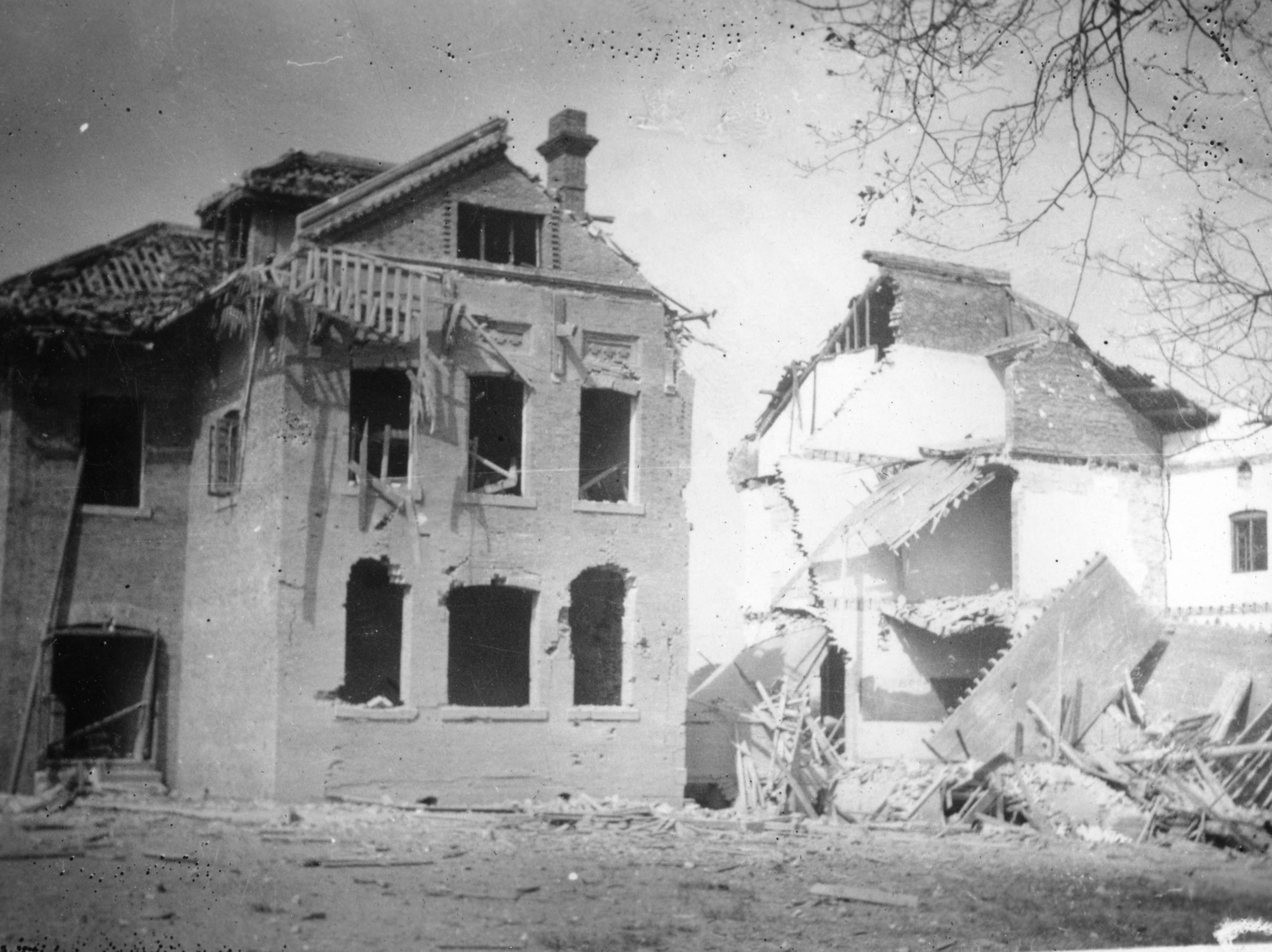 - The back of the Tzeliutsing Hospital, or possibly the adjoining women's hospital, showing one side of the roof and the walls torn down completely after the Japanese bombing.
