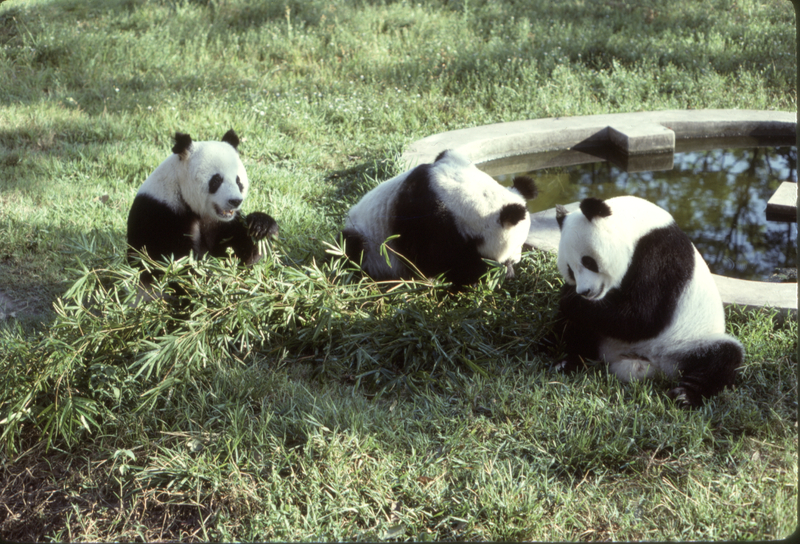 Three Pandas at Xiqu Park, 1975