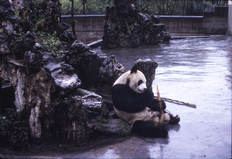 Earl and Katharine Willmott visited the Chongqing Zoo's panda enclosure during their 1975 trip to China. Then called Xiqu Park, this zoo cared for the largest captive panda population in the world at that time. Ice was used to keep the pandas cool in the hot humid climate of Chongqing. To make an ice surface like that would have been part of the recent zoo renovations.