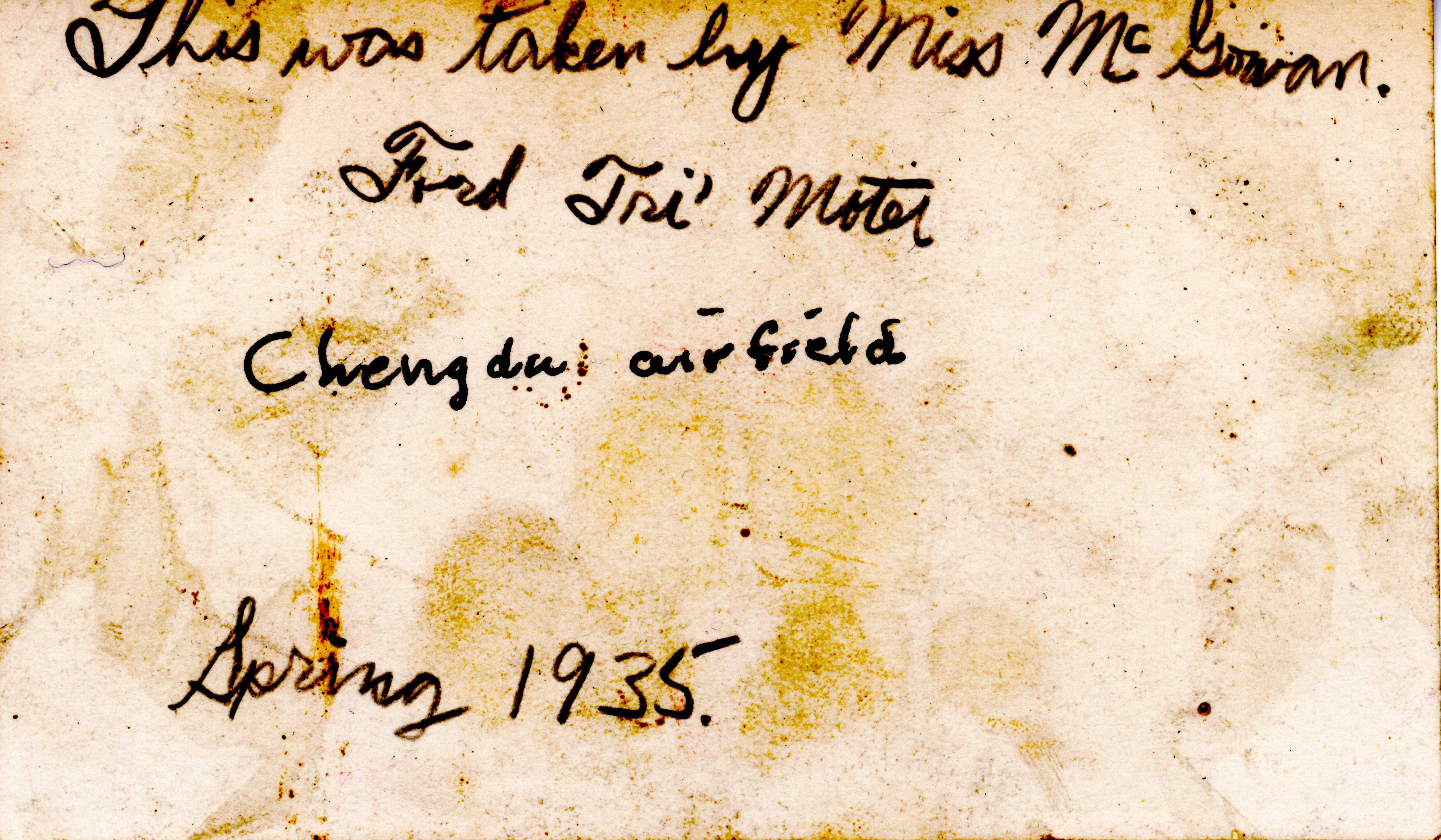 A Fokker F.VIIb/3m trimotor monoplane is seen from behind as it takes off from the the Chengdu Fenghuangshan Airfield (成都凤凰山机场).