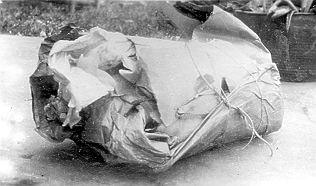 Mail service was not always reliable between North America and Sichuan. This was a package that Katharine's mother Carrie Dodds Geyer sent to her. Katharine sent the photo back in a letter to show her the outcome.