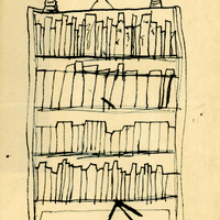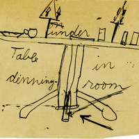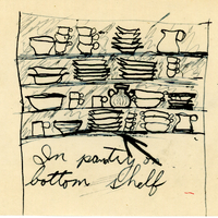 Lacking television, private radios, or cell phones, children of missionaries devised their own means of entertainment. Donald Willmott (age 9) created this fun game for his younger brother Richard Willmott (age 4). The artifacts in the drawings match those seen in photographs and that remain in the family, so this series shows the inside of a missionary household.